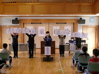 1年生を迎える会がありました。6年生が企画したなかよし班対抗のクイズやゲームを全校で楽しみました。会場は終始あたたかな雰囲気でした。