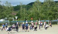 空模様が怪しくなってきたので、競技の順番を変えてやりました。来入児の「風車ひろい」の後は、低学年のダンスと高学年の組体操が行われました。演技する中身はもちろん、体形変化や効果音などを工夫することにより、少人数でも見栄えのある発表ができました。